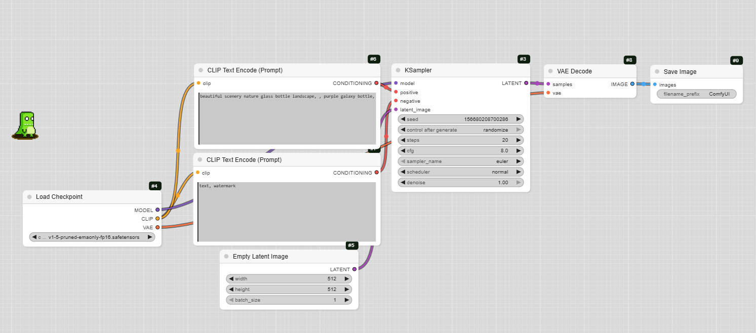 - Decode and save: After the KSampler generates the latent image, you need a VAE Decode node to convert it into a viewable image. Finally, a Save Image node will save the final result to your computer.