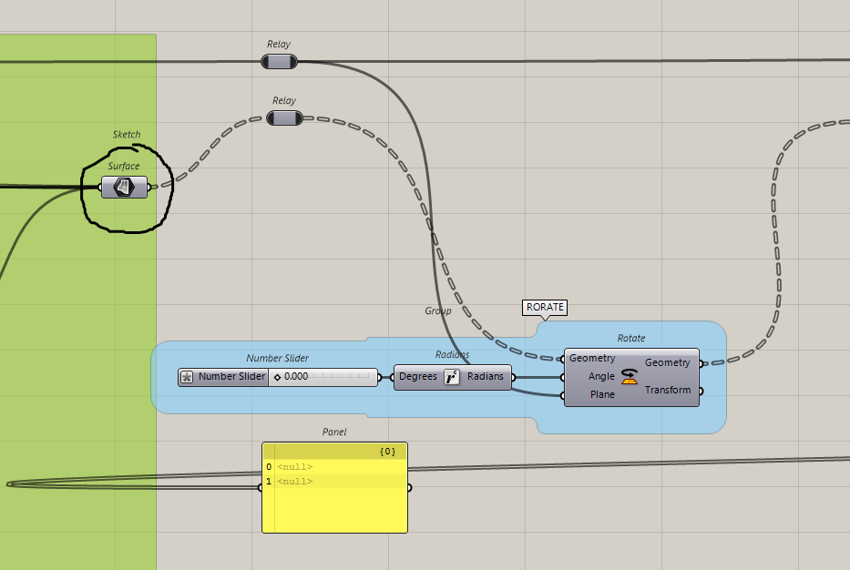 - Context Geometry (The Wall): The components in the top-left green group create the surface that will act as shading context. This is likely a single, large rectangular surface representing the building facade.