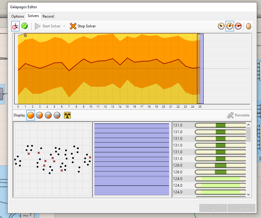 - Galapagos: A built-in optimization solver component in Grasshopper that uses evolutionary algorithms to find optimal solutions for design problems by iterating through numerous parameter combinations to achieve a defined « fitness » goal.