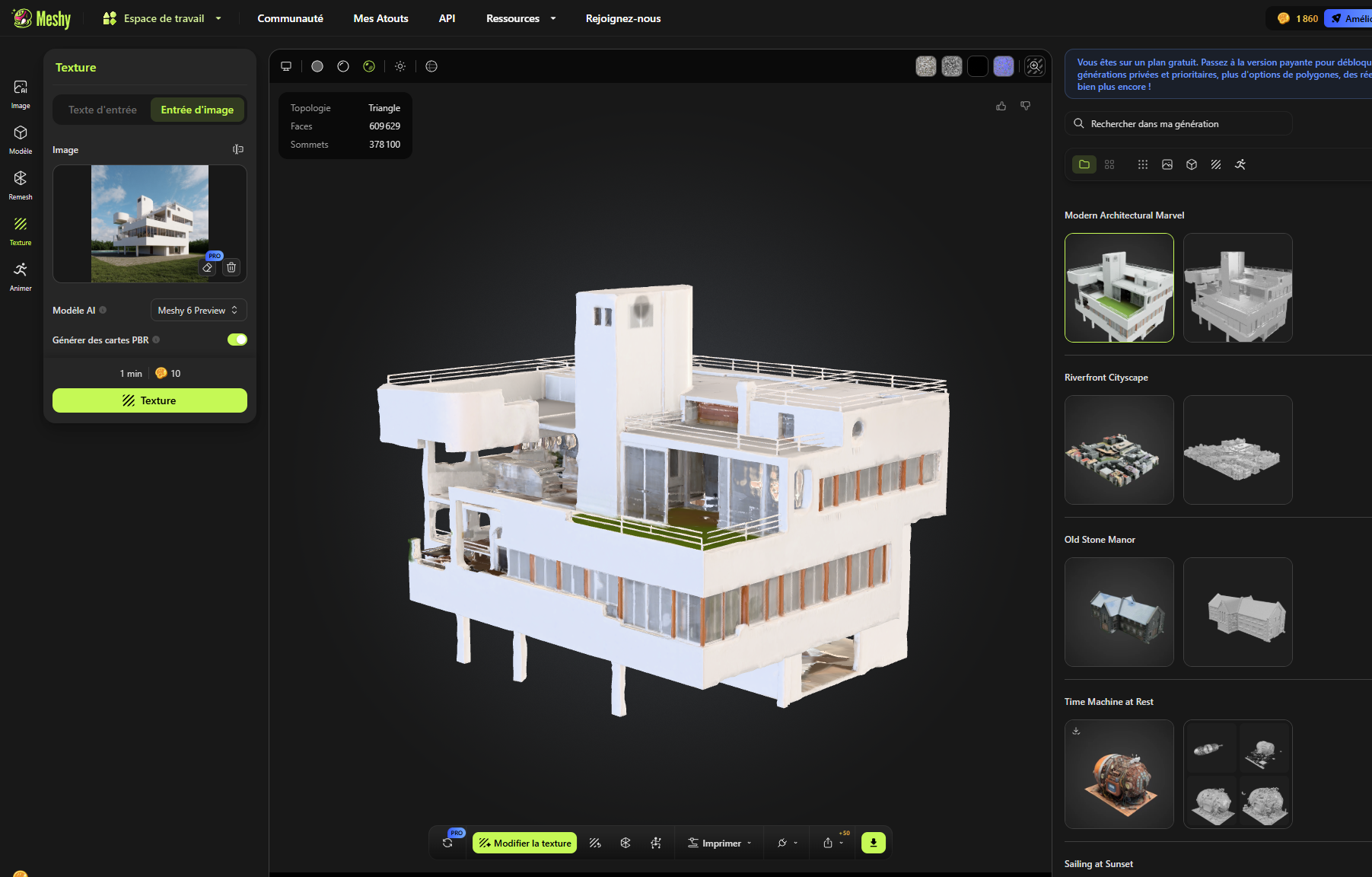 Objectif : obtenir rapidement une image architecturale lisible (forme, masse, ambiance) avec prompts courts et efficaces.