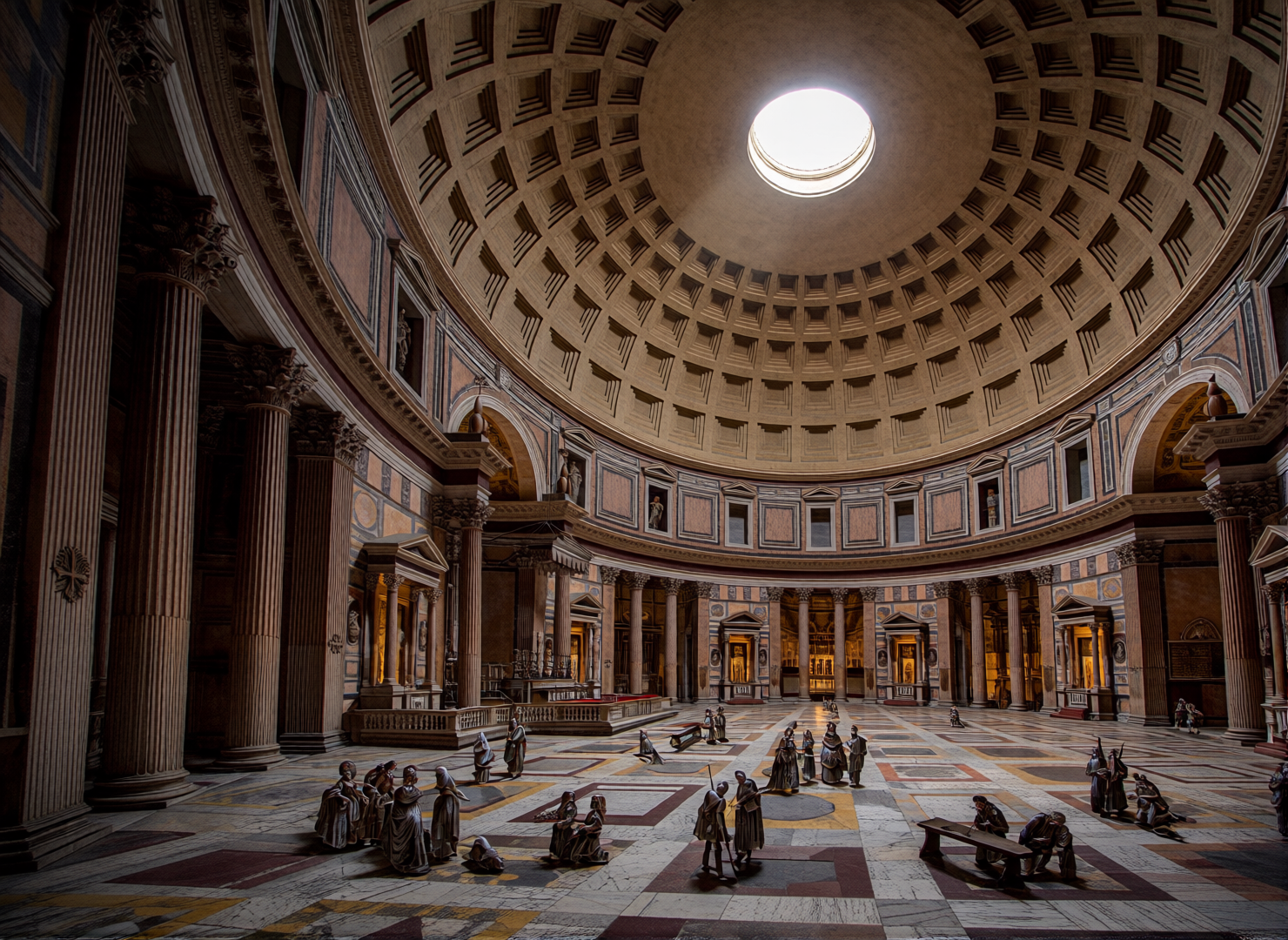 L’artiste manipule la perspective pour écraser le spectateur. Les minuscules figures humaines, ces « punti » perdus au pied d’arches cyclopéennes, ne sont pas là pour animer l’espace, mais pour souligner notre finitude. Comme l’indique la mise en scène théâtrale de la « Scenographia Insulae Tiberinae », l’espace est une scène de tragédie où l’individu est nié par l’éternité du granit. C’est ici que naît le « Sublime » : dans cette tension insoutenable entre la terreur de notre propre insignifiance et la beauté transcendante de ce qui nous survit.