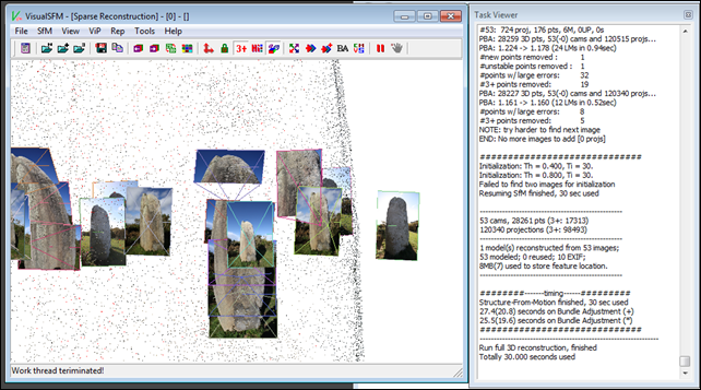 3D, archéologie, Conception, Méthodologie, photomodélisation 3D-photo – Kermaillard–reconstruction avec VisualSFM 04/24/2012 Laurent Lescop Laisser un commentaire http://www.cs.washington.edu/homes/ccwu/vsfm/