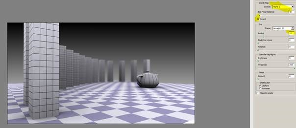 Aller dans Blur / Lens Blur ou atténuation / atténuation de lentille.