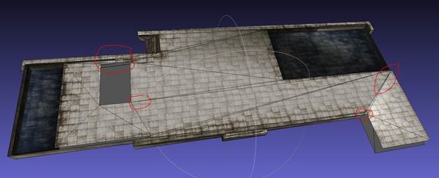 On peut trianguler cette zone afin d’éviter de multiplier le modèle : We can retraingulate to save some polygones.
