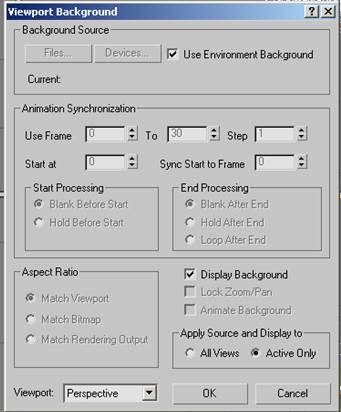 Il s’agit maintenant de créer la Texture du sol en fonction de la photo. Pour cela sera utilisée la procédure Camera map. Sélectionner le sol, puis touche M : matériaux. Créer un matériau avec l’image du fond l’appliquer au terrain. Choisir couleur diffuse dans l’onglet matériaux (« Maps ») et sélectionner encore l’image du fond du décor. Cliquer sur le bouton « Show Standard Map in Viewport ».