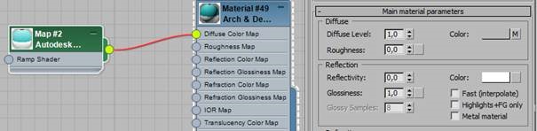 To render the pointcloud, it’s necessary to launch the NVidia MentalRay renderer and then to create a texture. In the Material menu, the Autodesk Point Cloud shader is connected to the Arch & Design material’s Diffuse Color Map input.